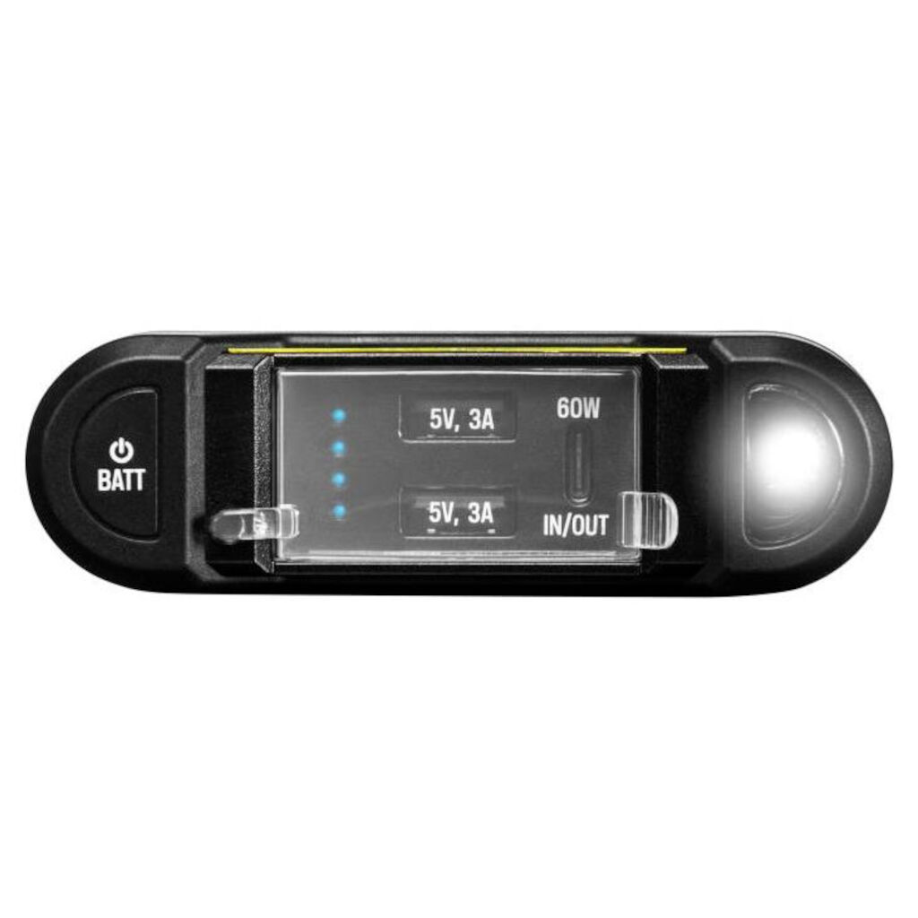 Kraftigt och tåligt batteripack med IP69-klassning som klarar av 1 meters vattendjup i minst 30 minuter. En powerbank med snabbladdning och kraftfullt batteri i förhållande till sin storlek som exempelvis klarar av 5 telefonladdningar eller 2 laddningar av surfplattan.