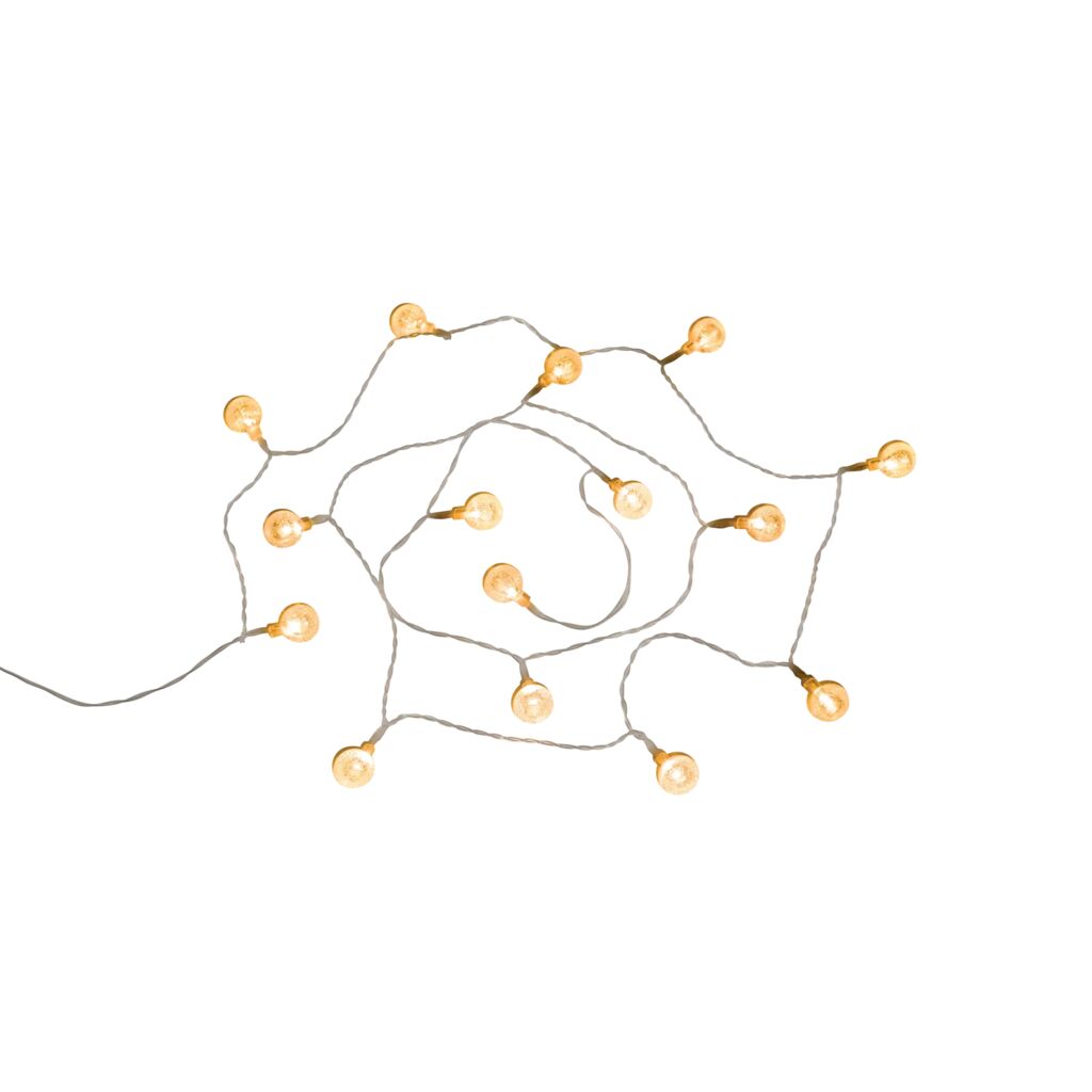 Batteridriven ljusslinga med 15 lampor ger behagligt ljus som passar överallt. Tänds och släcks enkelt med en på/av-knapp. Drivs av AA-batterier.