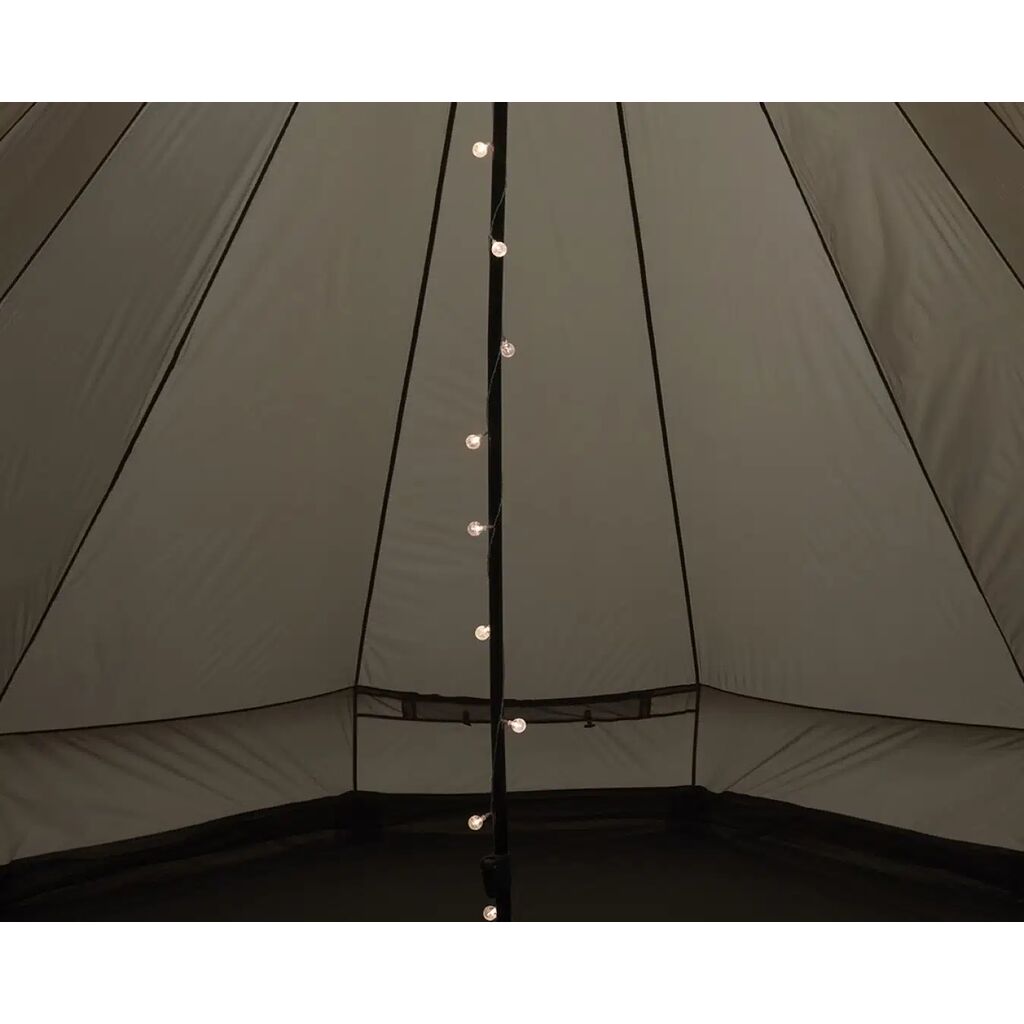 Batteridriven ljusslinga med 15 lampor som ger ett varmt och stämningsfullt ljus i tältet. Ljusslingan tänds och släcks enkelt med en knapp.