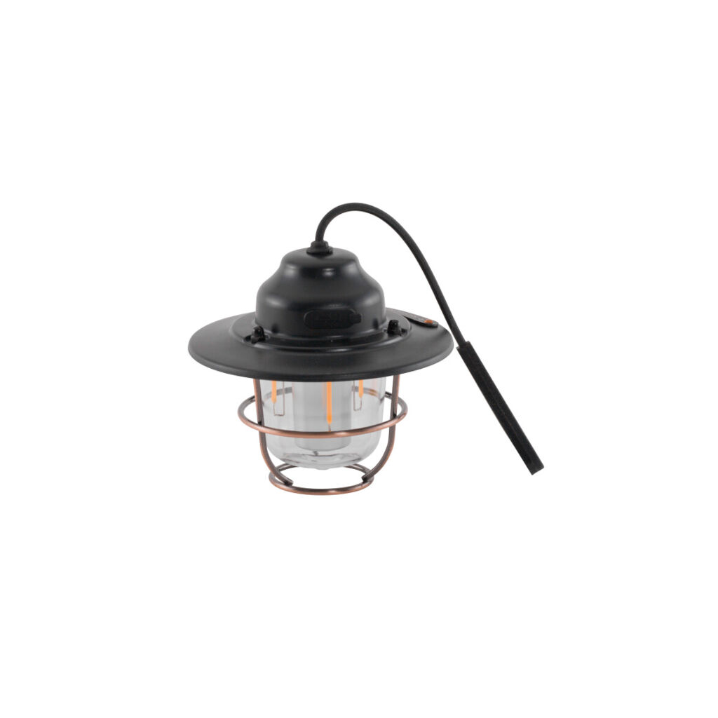 Kompakt och praktisk campinglampa i klassisk design med moderna funktioner. Lampan har uppladdningsbart batteri, dimmerfunktion och flera färglägen. Levereras med karbinhake för enkel upphängning och laddningskabel (USB-C).