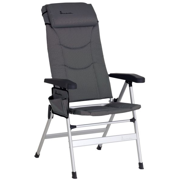 Hopfällbar campingstol med en stor nackkudde samt ett högt ryggstöd med åtta lägen. Tyg i en mjuk Polyweave textil (60% PVC Coating/40% Polyester) som är mycket tålig mot både slitage och UV-ljus. Med andra ord en stol för er som campar mycket.