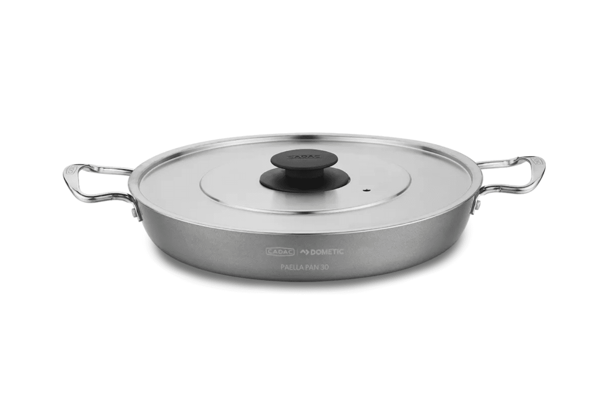 Cadac Paella Pan 30 är utrustad med handtag i rostfritt stål för säker hantering är denna panna perfekt för att tillaga risotto, paella, pastarätter, frukostar och andra måltider för ett stort antal personer.