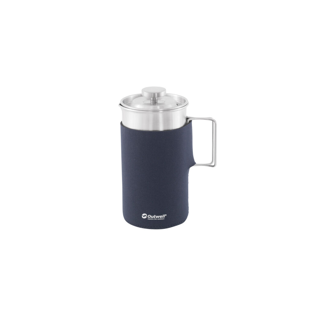 Stor kaffepress med en volym på en liter tillverkad i rostfritt stål. Kannan kommer med ett isolerande fodral i neopren vilket gör att den håller kaffet varmt längre.