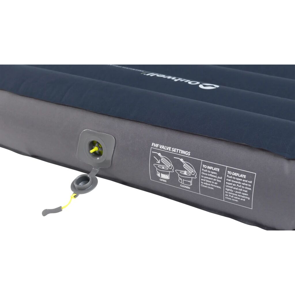 Outwells Flat High Flow Valve ger en snabb fyllning och tömning av madrasserna tack vare större luftkanaler. En inbyggd backventil gör den lätt att fylla. En annan bra funktion är att det går använda en pumpsäck för att reglera hur hård man vill att madrassen ska vara i stället för att behöva blåsa själv.