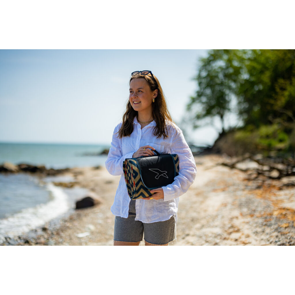 Picknickfilt med en mjuk yta i fleece i härliga färger och en folierad vattentät undersida som även är isolerande. Inbyggt handtag gör filten lätt att ta med.