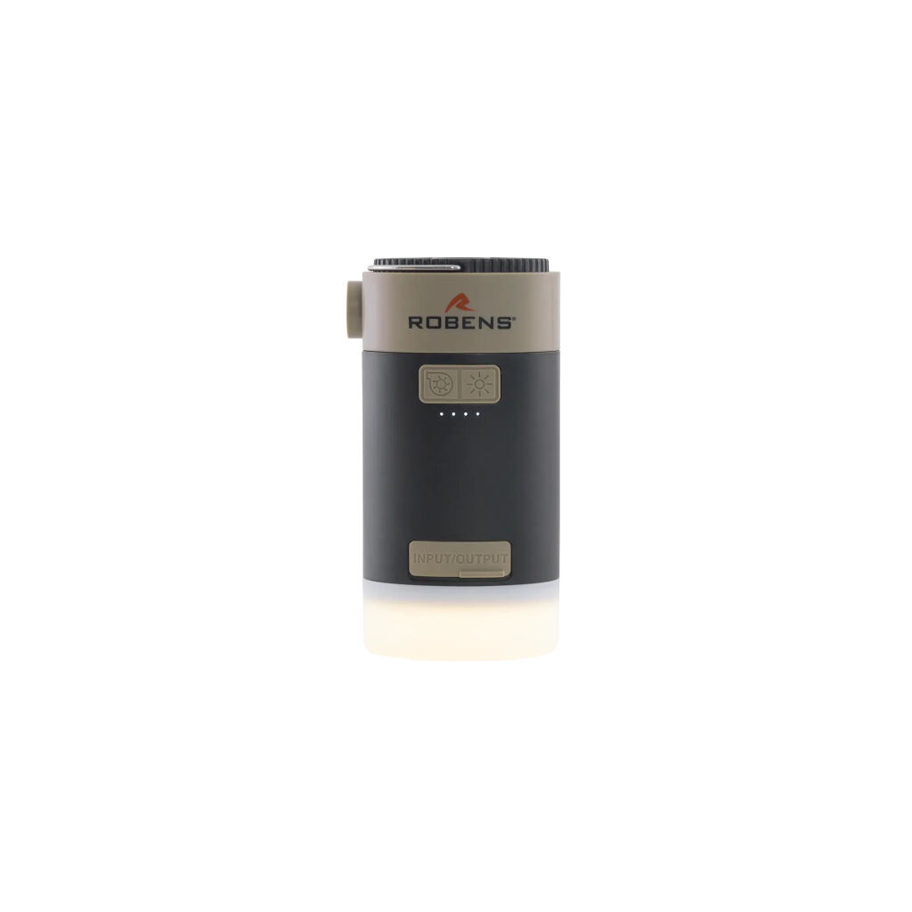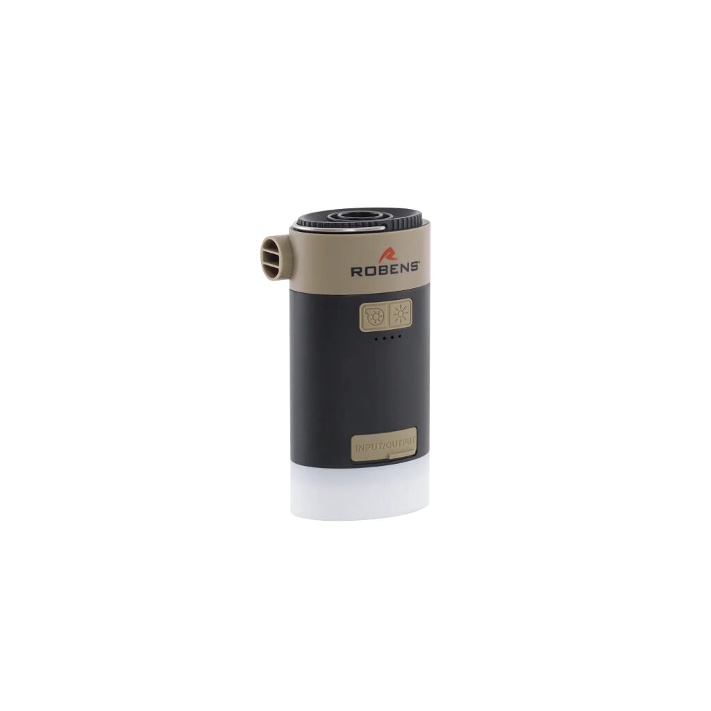 Kompakt och tålig batteridriven madrasspump som även fungerar som lampa och powerbank. Pumpen kan laddas via USB-C eller den inbyggda solpanelen. Perfekt för att pumpa liggunderlag, luftmadrasser eller uppblåsbara möbler med. Kommer med 5 munstycken samt en adapter för Robens liggunderlag och Outwells FHF-ventiler. Inbyggd krok gör att lampan också kan hängas upp i taket på tältet.