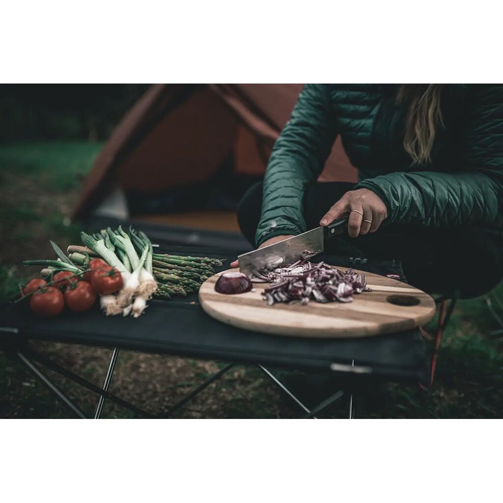 Litet hopfällbart lågt bord med liten packstorlek, för två till fyra personer. Passar utmärkt i det lilla tältet, på dagsturen, till stranden eller på picknicken då det även går bra att sitta på marken och äta vid bordet. Enkelt att montera.