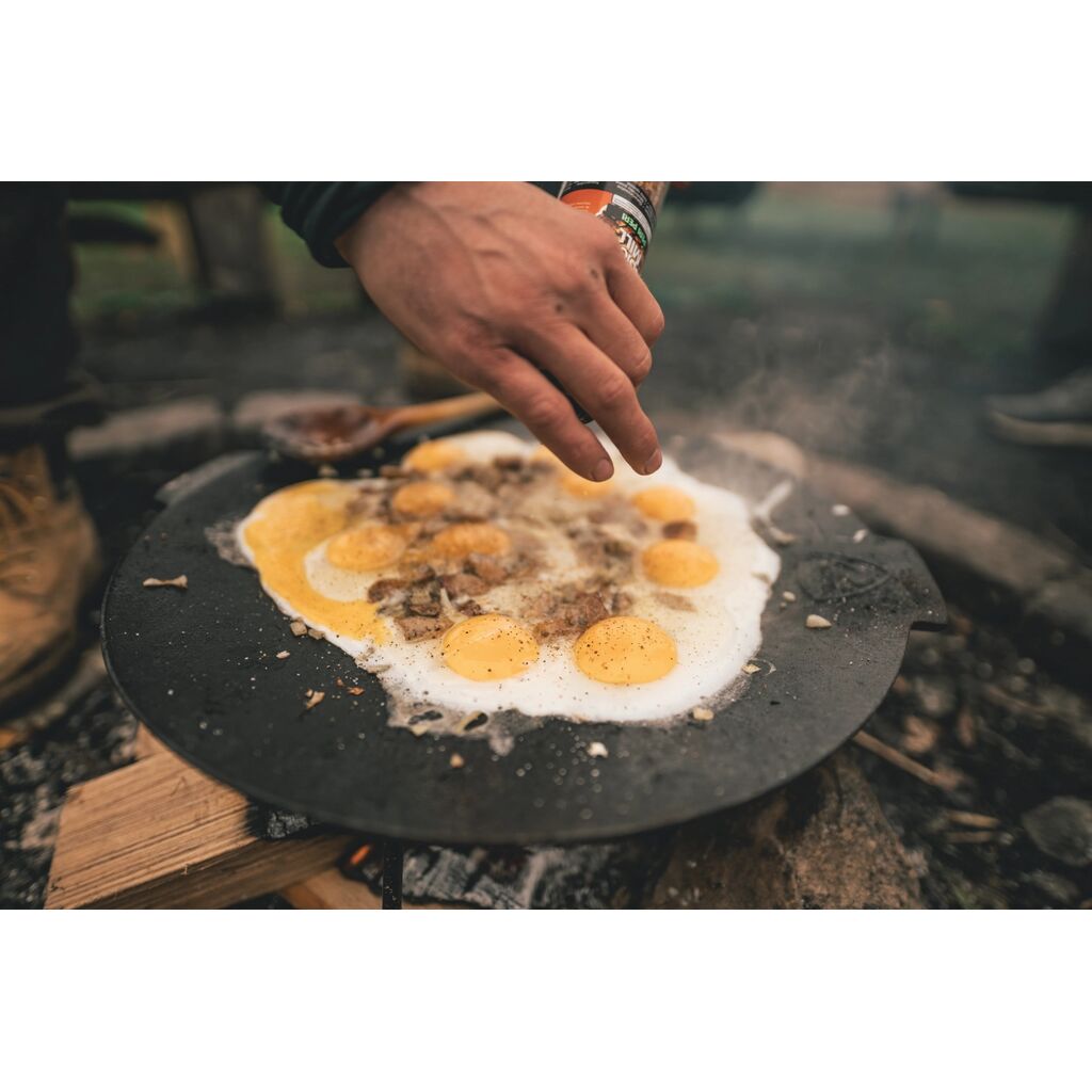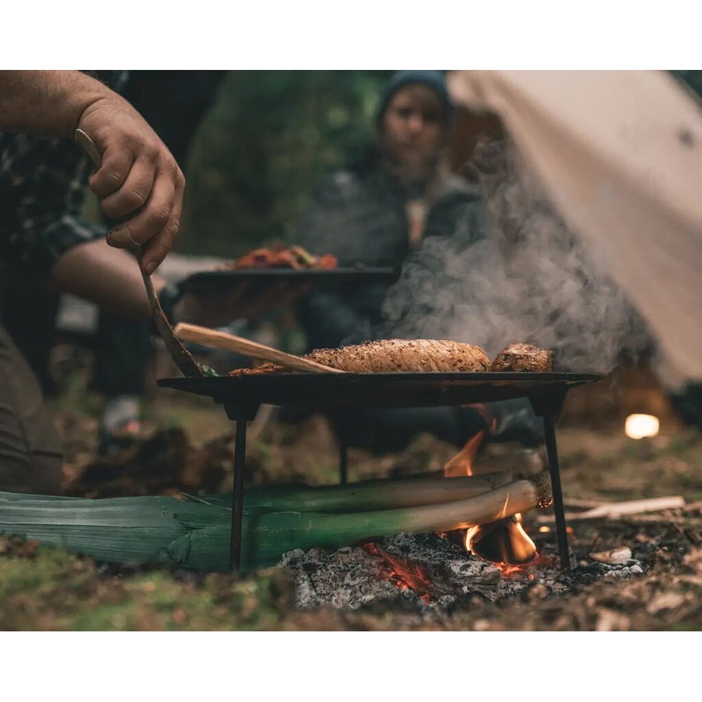Stekhäll i gjutjärn för matlagning över öppen eld. Att laga mat med Bighorn gör att hela familjen eller gruppen kan samlas runt stekhällen och laga mat tillsammans.