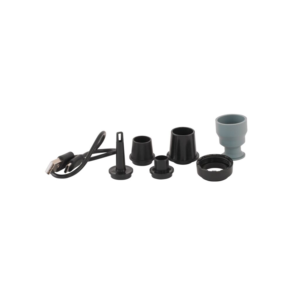 Uppladdningsbar pump som snabbt både kan pumpa och tömma luftmadrasser och annan friluftsutrustning. Pumpen levereras med fem olika munstycken och en förvaringsväska. Laddas upp via USB-C.