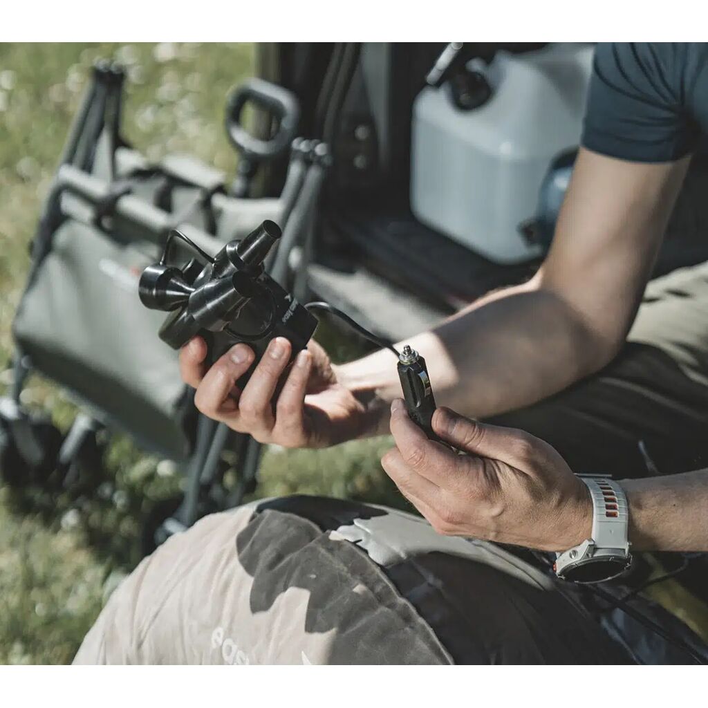 El Nino från Easy Camp är en snabb och effektiv pump som både kan blåsa upp och tömma luftmadrasser och annan campingutrustning. Pumpen kan anslutas till bilens 12V-uttag. Ett mångsidigt redskap när man är ute och reser.