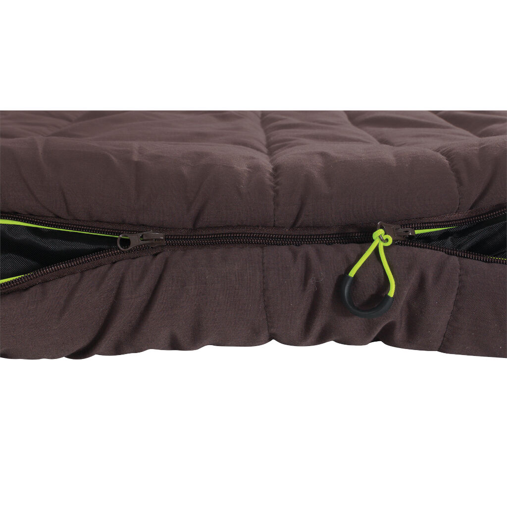 Den varmaste sovsäcken i premiumserien Outwell Camper riktar sig till er som antingen bara vill ha en riktigt varm och skön sovsäck eller till er som campar under de kallare perioderna under året. Kraftig tvålagersfyllning minimerar risken för kalla fläckar och skulle det bli för varmt kan man alltid öppna den i fotändan för att vädra eller helt och använda den som ett vanligt täcke. Tack vare ett innerfoder i mjuk bomull så får man en betydligt bättre känsla än med vanliga sovsäckar. Dragkedjan är skyddad med en övervikt kant med fyllning som förhindrar värmeläckage.