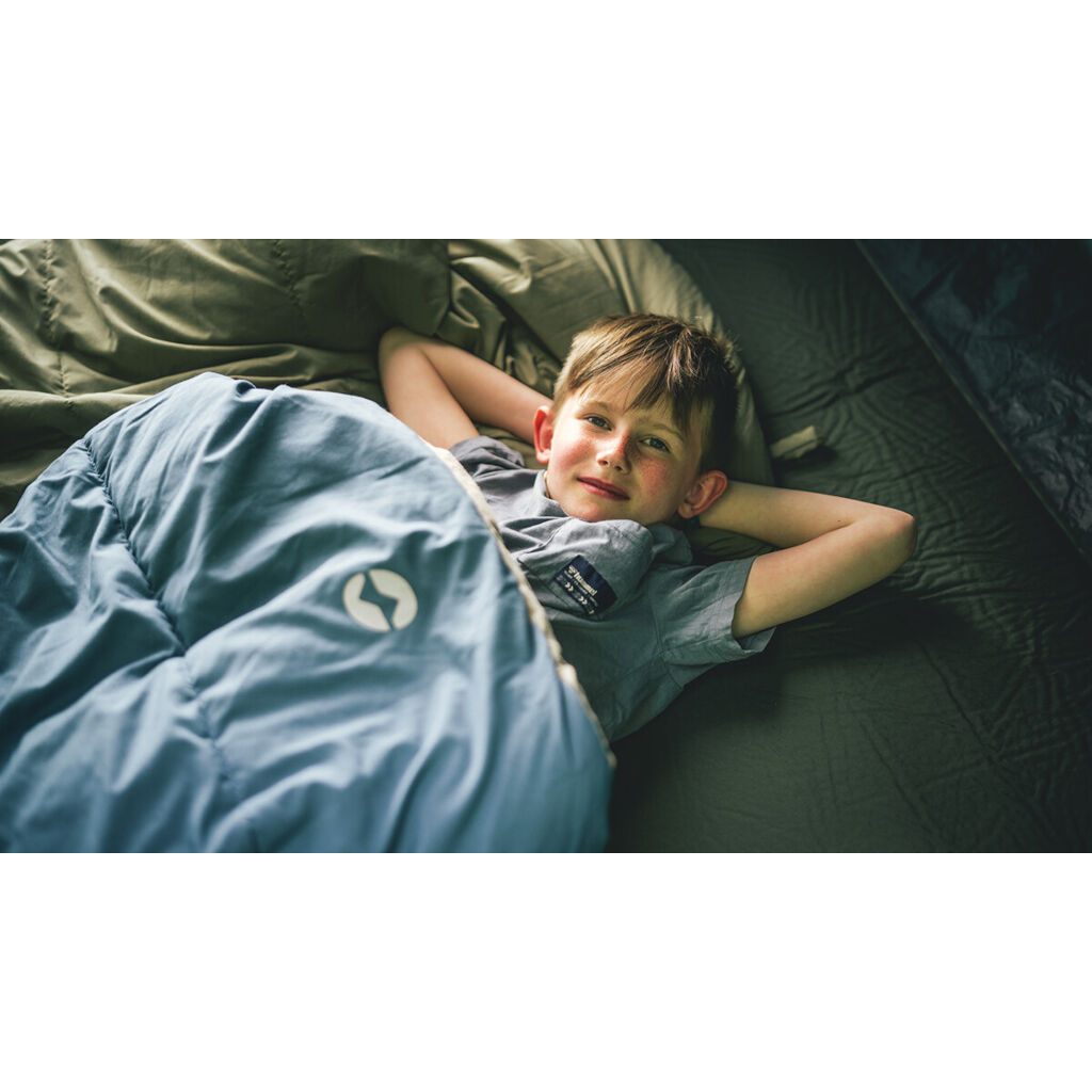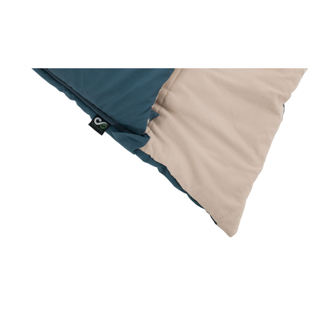 En varm och väldigt skönt sovsäck som passar under hela campingsäsongen från tidig vår till en bit in på hösten. Tack vare ett innerfoder i 100% mjukt bomull så får man en betydligt bättre känsla än med vanliga sovsäckar. Tvålagersfyllningen minimerar risken för kalla fläckar och skulle det bli för varmt kan man alltid öppna den i fotändan eller helt och använda den som ett vanligt täcke. Dragkedjan är skyddad med en övervikt kant med fyllning som förhindrar värmeläckage.