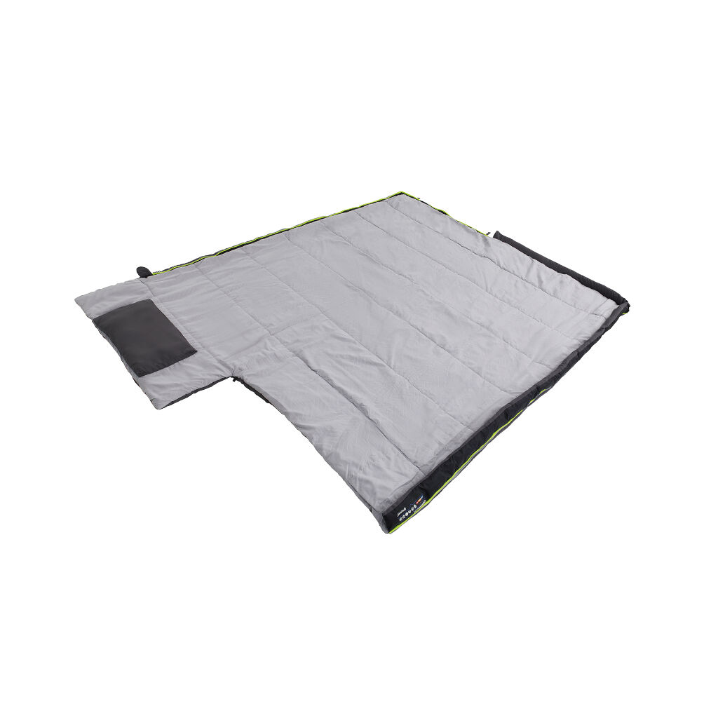 Prisvärd campingsovsäck med inbyggd kudde som enkelt går öppna och använda som vanligt täcke. Tvålagersfyllning som minimerar risken för kalla fläckar. Dragkedja med övervikt kant som skyddar från kalldrag ger en bra värmekomfort även vid lägre temperaturer. Tack vare att dragkedjan även går öppna nedifrån går det bra att bara öppna fotändan för att hålla nere temperaturen i sovsäcken under varmare nätter. Borstad polyester på insidan gör den skön att sova i. Säcken kommer packad i en kompressionspåse som gör den enkel att packa och skyddar under transporter.