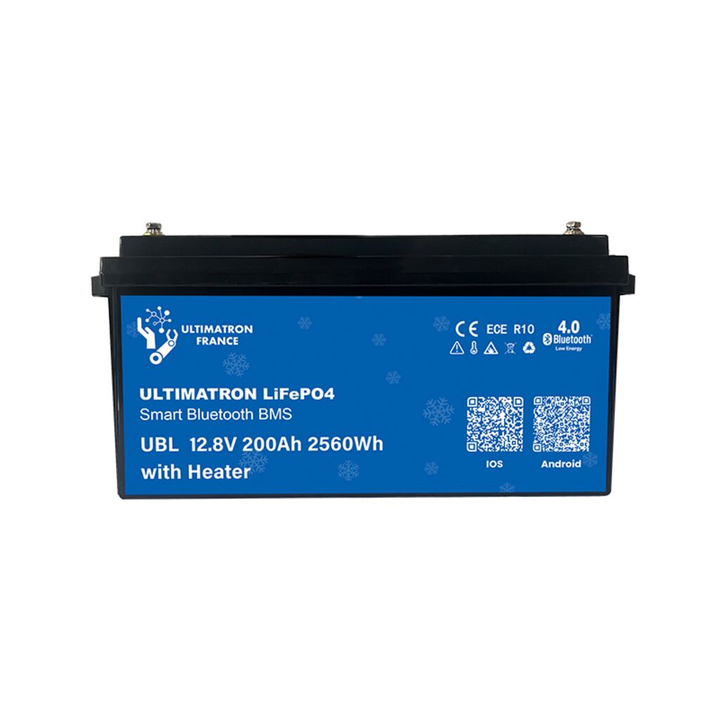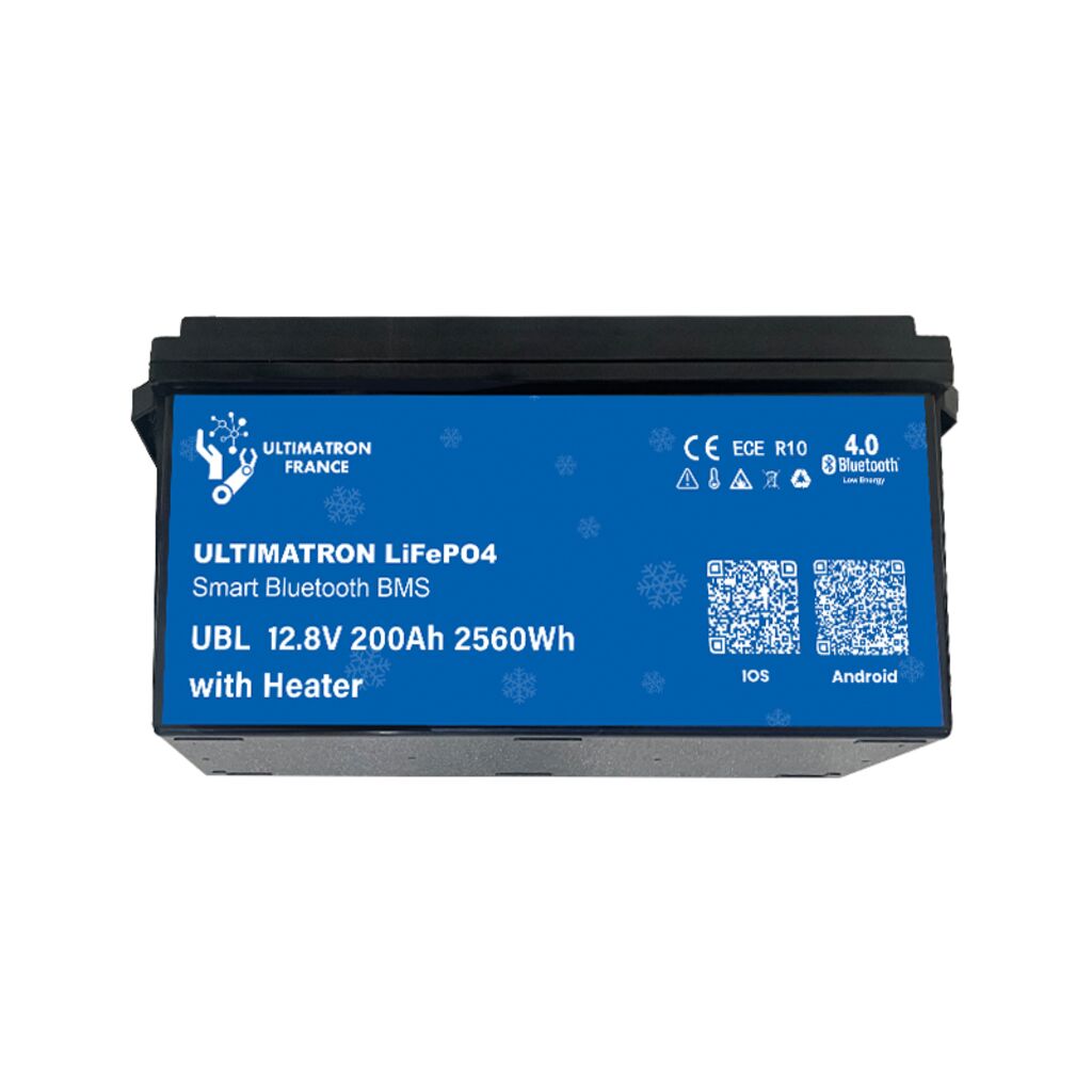 Litiumbatteri med en kapacitet på 200Ah för husvagn, husbil eller båt med inbyggt värmesystem vilket gör att det kan laddas även vintertid. Med en löpande urladdningskapacitet på 200A passar det även inverters på upp till 2000W. Ultimatron Heat 200Ah har en BMS (battery management system) som säkerställer och skydda batteriet mot felaktig laddning, höga temperaturer och överbelastning. Tack vare dess BMS kan du byta ut ditt blybatteri (ej startbatterier) rakt av utan att behöva göra några justeringar i elsystemet. Batteriet kan även parallelkopplas upp till 4 st batterier för utökad kapacitet.