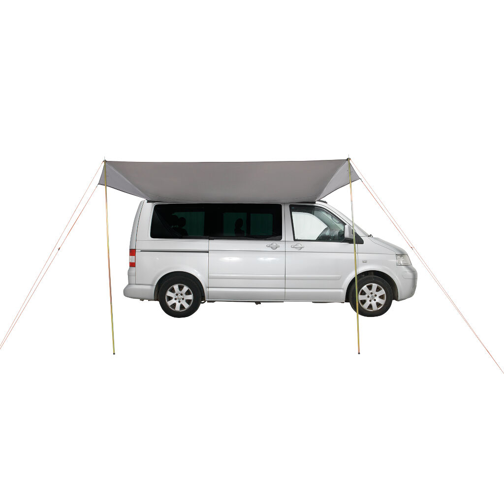 Markis för vans, husvagn och mindre husbilar på 2,5 x 2,6 meter. Tack vare en liten packstorlek är det enkelt att ha med och enkelt att montera när man behöver en skyddad uteplats. Kan fästas via kederlist (5+7 mm) eller med linor över bilen.