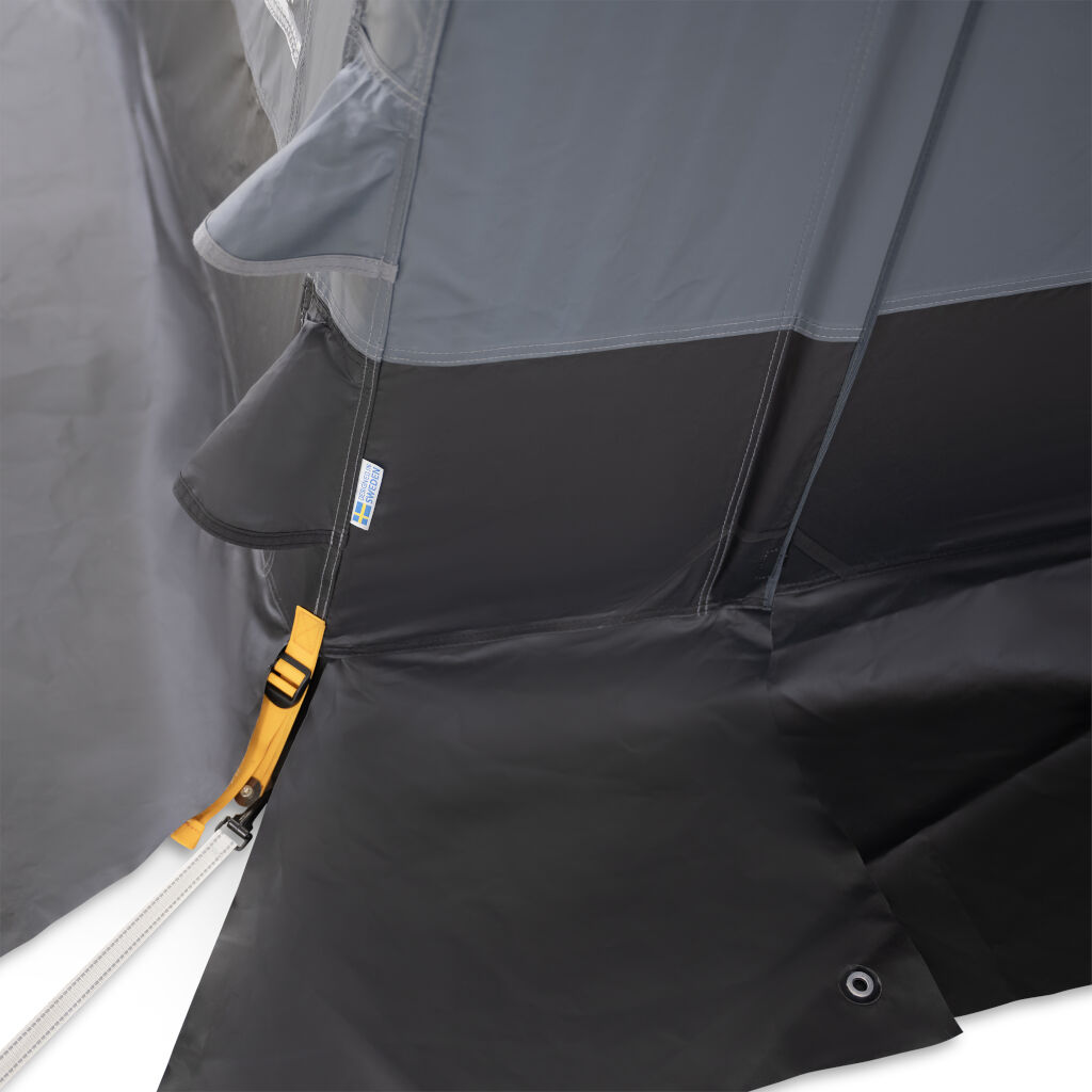 - Stark tältduk 400 g/m² Weathershield PVC som är avsedd för vinterförhållanden samt är hållbart, vattentätt och enkelt att rengöra