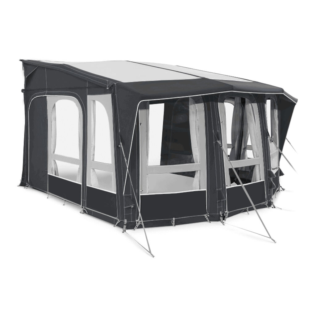 Dometic Ace Air Pro är ett förtält som inte bara har en riktigt hög komfort utan kan numera användas året om, tack vare den kraftfulla duken och stabila luftkanalerna. Tack vare djupet på 325 cm och de bockade luftkanalerna som ger en bra takhöljd i hela tältet finns det gott om plats för möbler utan att förtältet blir trångbott. Att det har dörrar från båda sidor ger ytterligare frihet att möblera och ändå hålla husvagnen eller husbilen lättillgänglig. Vill man sedan öppna upp tältet mer går både front och sidosektionerna öppna upp. Båda dörrarna har myggnät vilket ger en riktigt bra ventilation utan att man får in småkryp i rummet.