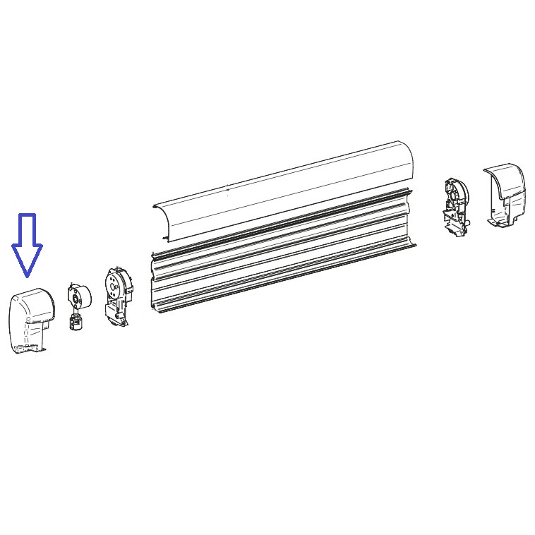 Vänster ändkåpa till markisen Thule Omnistor 8000 med motor. Skillnaden mot den vanliga täckkåpan är att ett täcklock för vevhålet ingår.