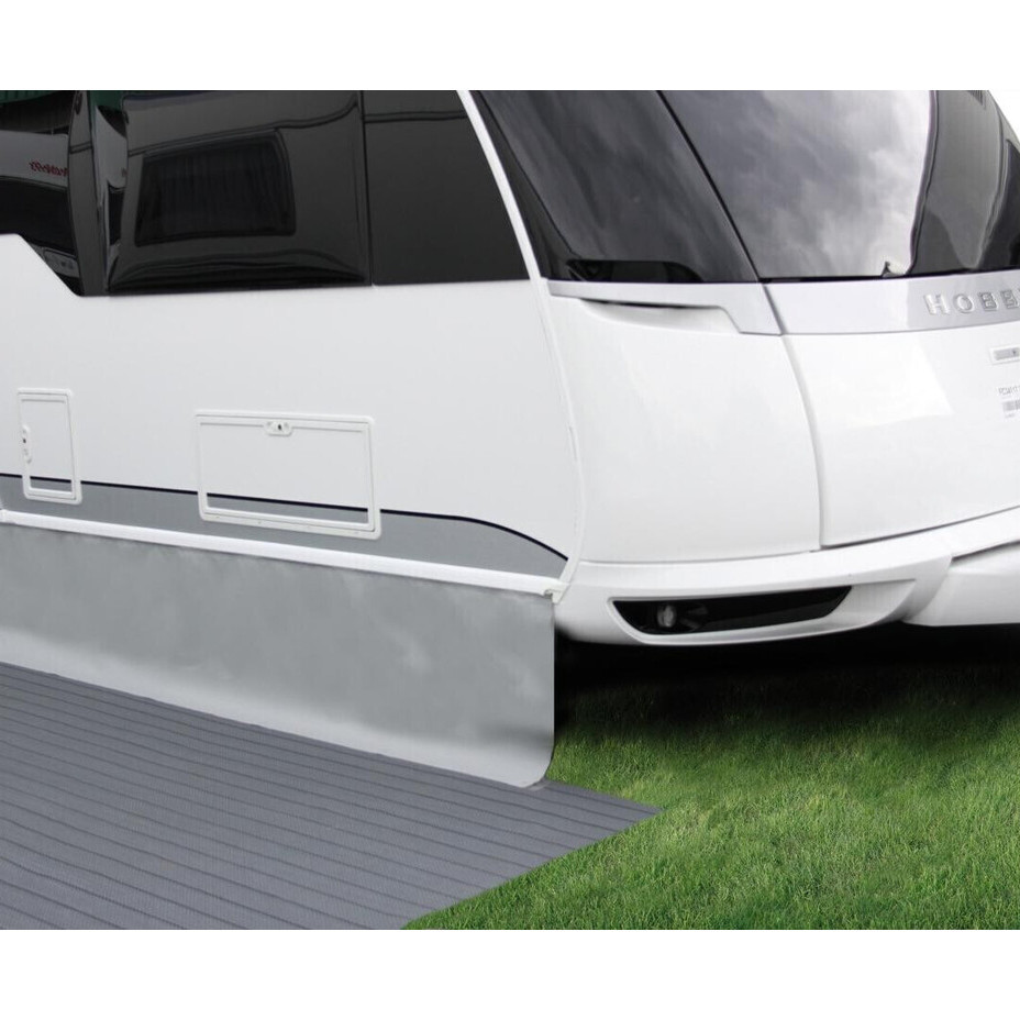 Markkappa i mjuk väv med linnestruktur från Hindermann. Håller undan småkrypen och skyddar mot kalldrag under husvagnen.