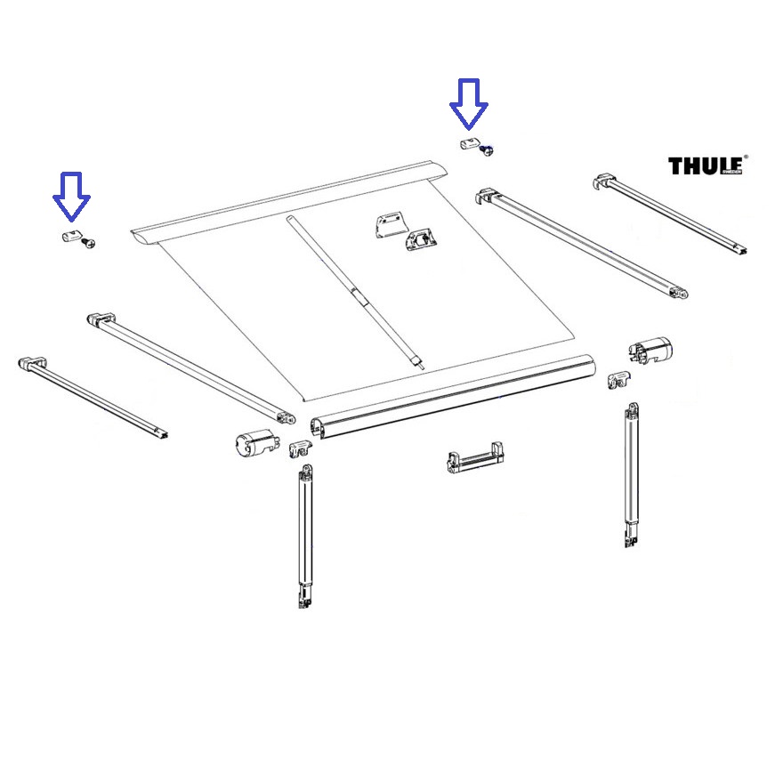 Kit med två stycken stoppskruvar för att fästa din Thule Omnistor påsmarkis i skenan.