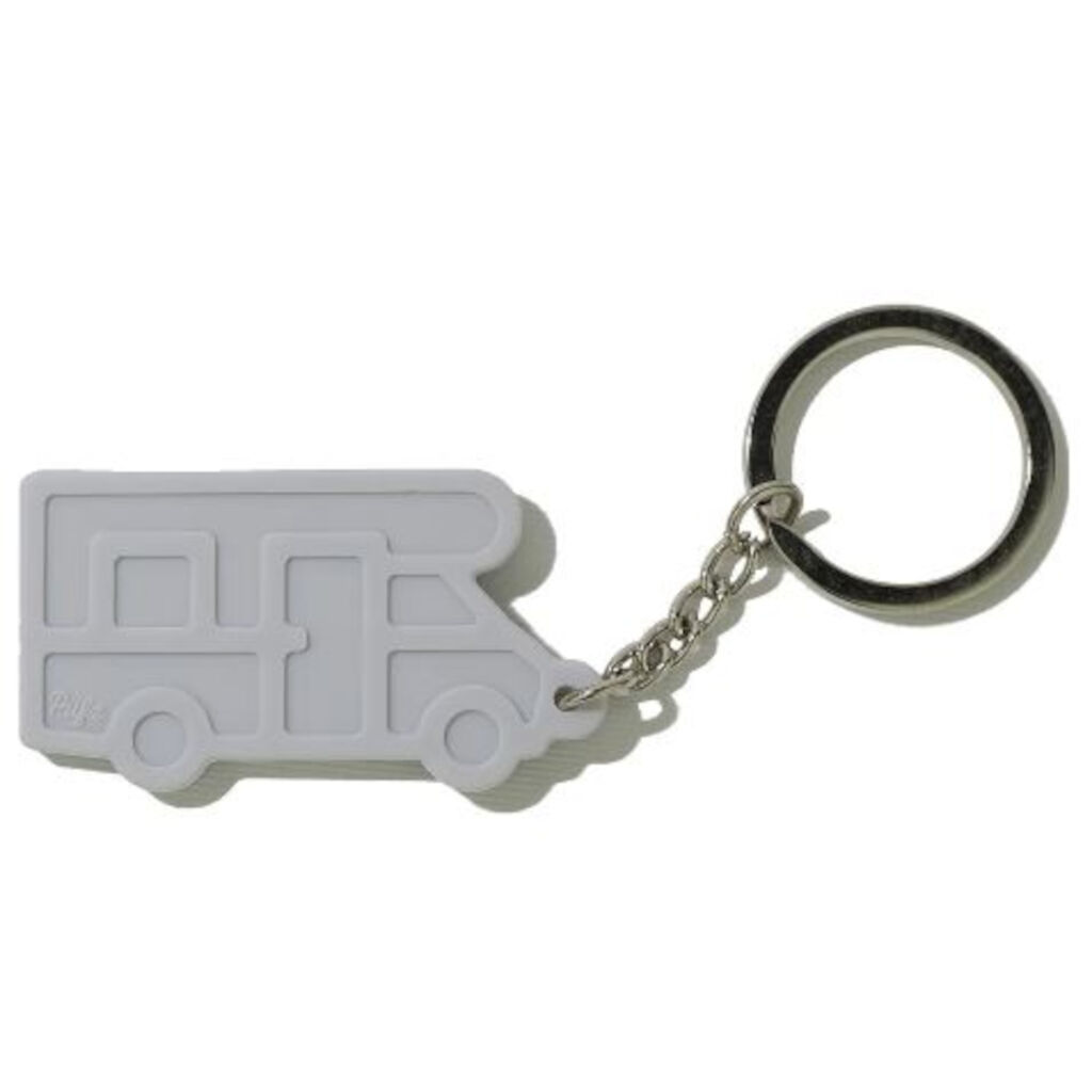 Med denna nyckelring så blir det enklare att hålla koll på vilken nyckel som tillhör husbilen. Gjord av Silikon och visar en husbil i klassiskt utförande.