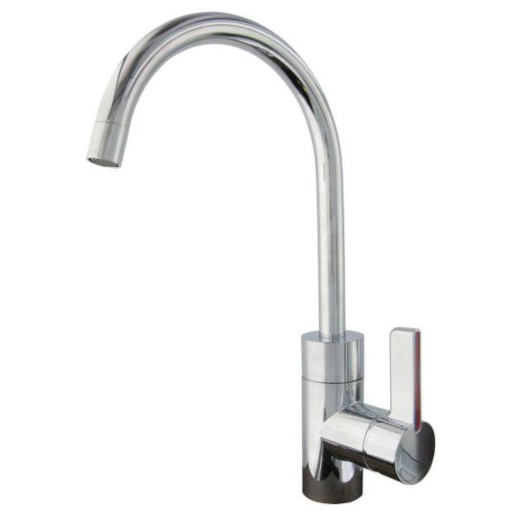 Köksblandare för husvagn och husbil från Tyska Comet med en 164 mm lång pip som kan svängas 360°. En keramisk insats ger lång livslängd och den går även enkelt att byta ut ifall det skulle bli problem med tätningen.