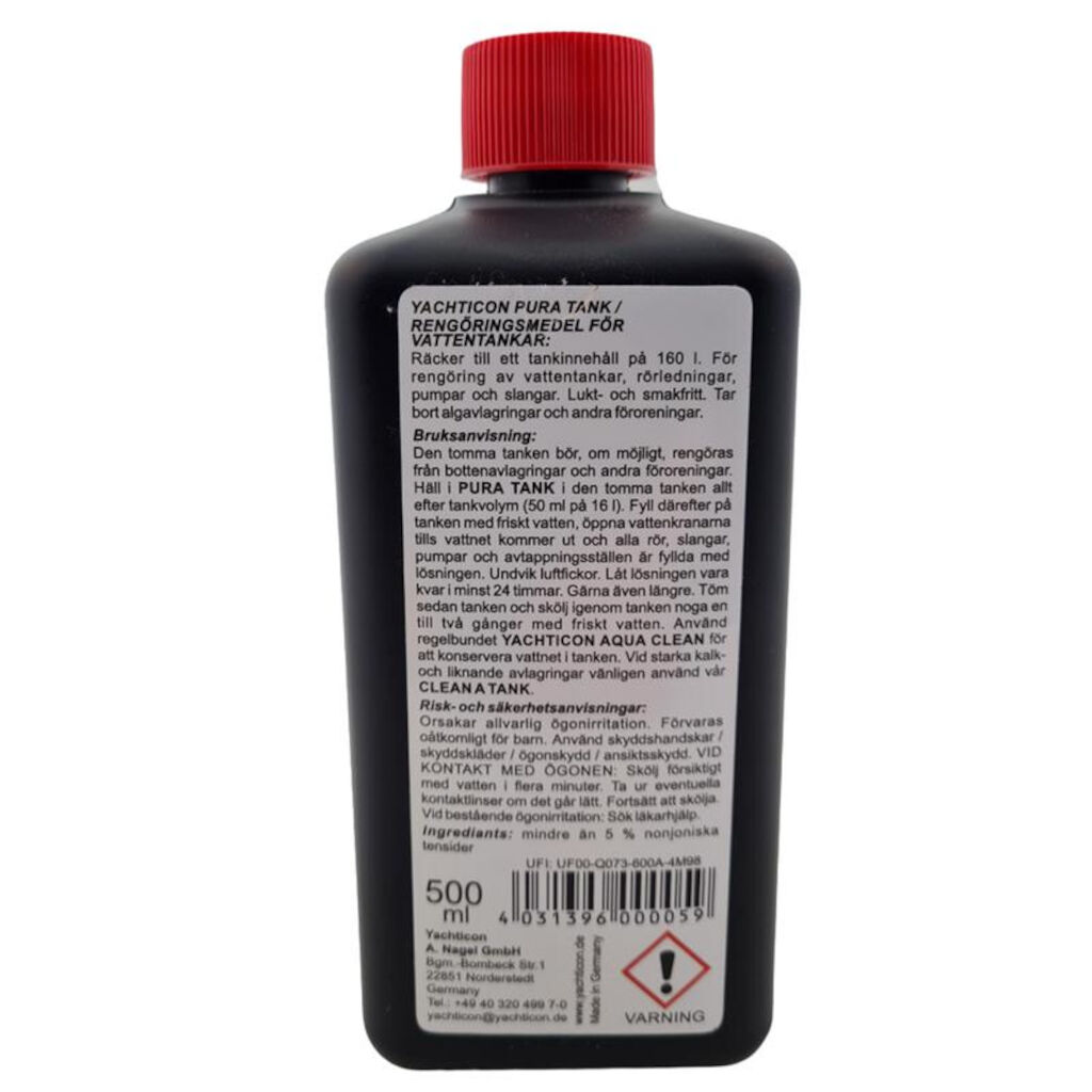 Håll din vattentank ren och fräsch med Yachticon Pura Tank – ett kraftfullt rengöringsmedel som effektivt avlägsnar algavlagringar, kalk och andra föroreningar från vattentankar, rör, pumpar och slangar. Produkten är lukt- och smakfri, vilket gör den idealisk för vattenförvaring i båtar, husbilar och fritidshus.