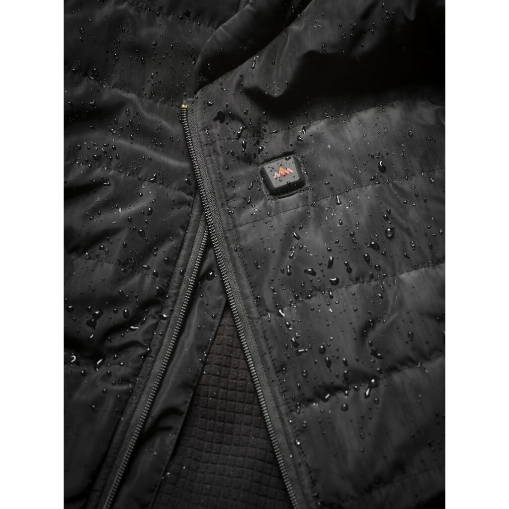 Västen är utrustad med HeatX™ 5V-värmeteknik och ansluts enkelt till en medföljande 10,000 mAh powerbank. Välj mellan tre värmenivåer med en knapptryckning för att anpassa värmen efter behov. Det yttre tyget är DWR-behandlat för vädertålighet, medan fodret i andningsbar sammet ger extra komfort under hela dagen.