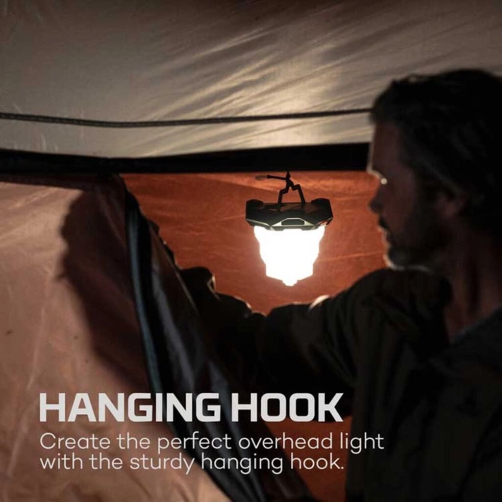 NEBO Galileo Air 500 är en hopfällbar campinglykta som kombinerar hög ljusstyrka med kompakt design. Med upp till 500 lumen och fem olika ljuslägen ger den rätt belysning oavsett om du lagar mat i tältet, läser en bok eller behöver orientera dig i mörkret. Den är även utrustad med ett rött ljusläge som bevarar mörkerseendet – perfekt vid nattlig navigation. En robust design med IPX4-klassning gör att den klarar regn och fukt utan problem.
