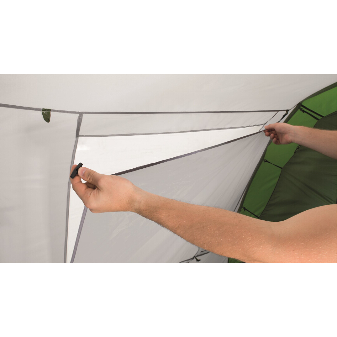 Tältduken är helt vattentät med tejpade sömmar och är dessutom flamskyddad. Stängerna är tillverkade i glasfiber och färgmarkerade mot stångkanalerna för en enkel montering.