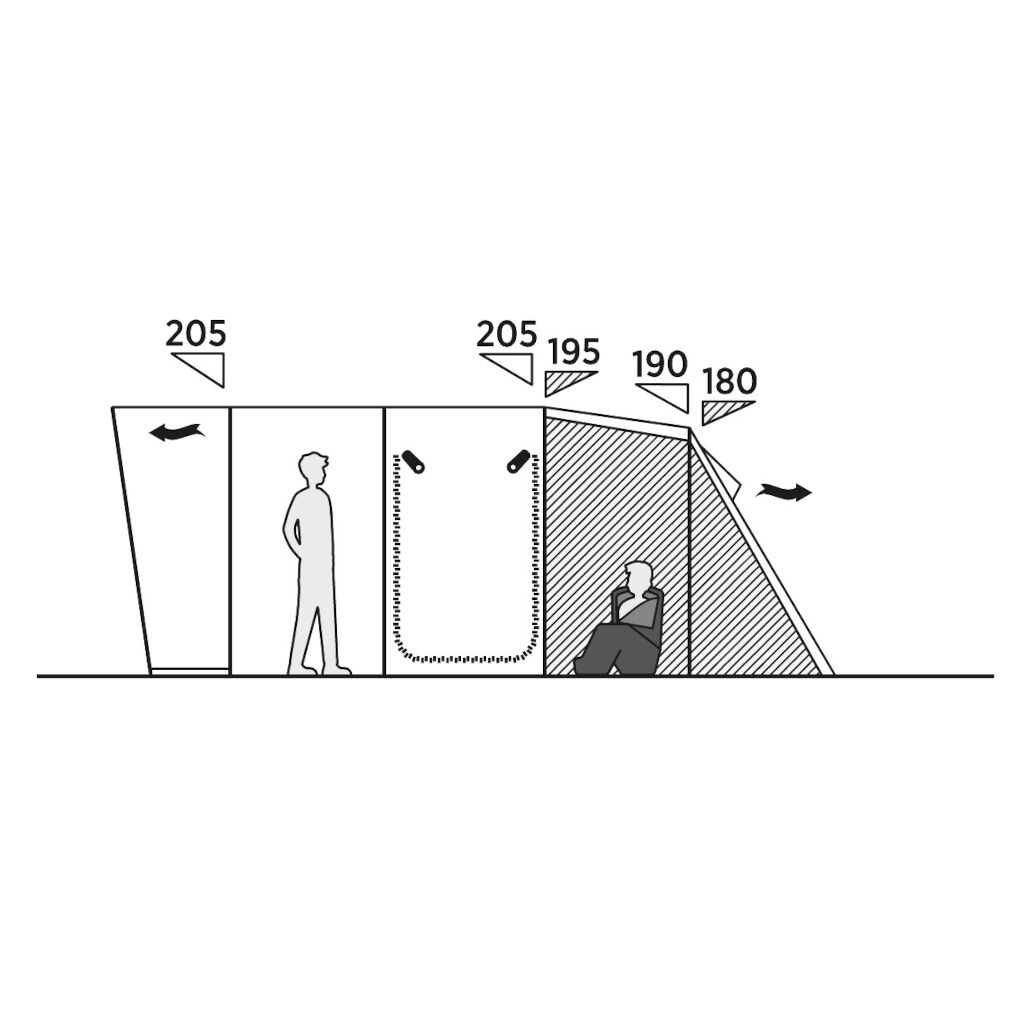 Solskyddet fram ger även det ett bra skydd mot regn och vind för ingången, underlättar matlagning i dåligt väder och ger lite extra skugga under varma dagar. Är även perfekt för att lämna blöta skor och utrustning i under regniga dagar.