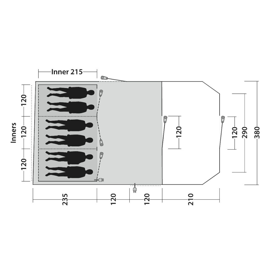 Stort familjetält med tre sovrum och ett rymligt och ljust allrum samt en skyddad ingång framtill. Allrummet har tack vare sitt fastsydda golv som skyddar mot kalldrag, småkryp och kondens ett riktigt bra klimat för att äta och umgås i. Mörk sovkabin med en borttagbar mellanvägg mellan sovrummen ger en riktigt bra sovkomfort vare sig man vill dela upp familjen eller samla alla i ett sovrum. Perfekt för den större familjen eller de som vill ha ett riktigt rymligt campingtält.