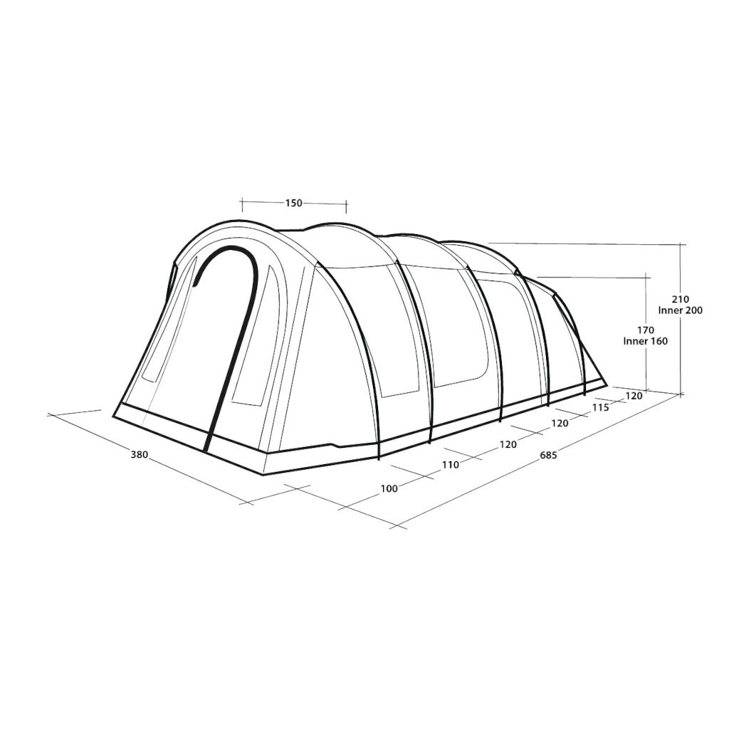 Outwell Carolina 6 är ett tunneltält med tre sovrum och ett rymligt allrum som är anpassat för sällskap upp till sex personer men vi rekommenderar det även för familjer på fyra eller fem för att ge lite extra utrymme i sovkabinerna. Tältet har ett fastsytt golv under hela tältet, vilket skyddar tältet mot vind, insekter och fukt. Kombinerat med de stora fönstren på allrummet får man ett ljust och trevligt klimat i allrummet. Något som speciellt märks kyligare kvällar och vid sämre väder.
