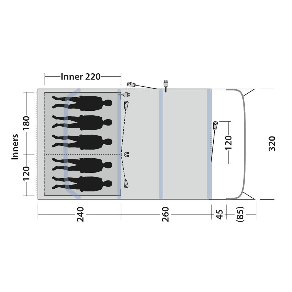 - Outwell Hook Track System - häng taklampor eller utrustning upp till 1,5 kg längs listen (fästen ingår)