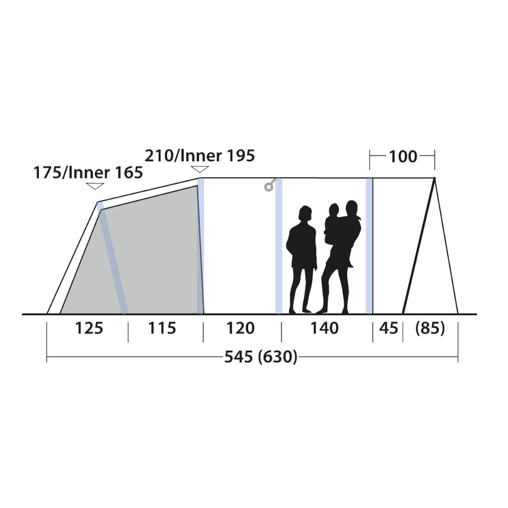 Snabbrest familjetält med luftstänger och väl tilltagen takhöjd, extra djupt soltak och ett allrum på hela 260 x 320 cm. Tack vare Rigid Air-tekniken behöver du bara fästa tältduken i marken och pumpa upp luftkanalerna med den medföljande pumpen. Den enda stången som används är för soltaket och kan monteras när tältet är upprest. Det insydda golvet ger ett effektivt skydd mot smuts, drag och insekter, och tältet är redo att användas på bara några minuter. Tältet har även stora tonade fönster som släpper in ett mjukt, behagligt ljus samtidigt som de minskar insyn och skyddar mot värme. Familjetältet har två dörrar, en på sidan och en fram. Sidoingången gör tältets inre allrum lättillgängligt och underlättar placeringen på campingen och kan dessutom öppnas upp under varma dagar för att vädra tältet.