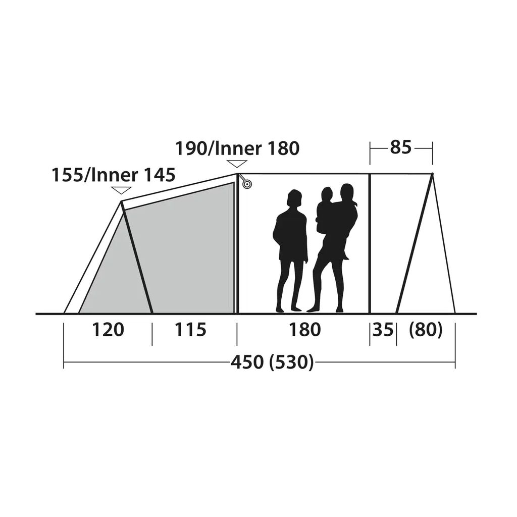 Outwell Durango 4 är ett fyrapersoners familjetält med många praktiska detaljer och extra stora fönster i allrummet. Det rymliga allrummet ger bra med plats för möbler utan att det blir trångt och den mörka sovkabinen med två sovrum kan öppnas upp till ett stort sovrum för er som vill samla familjen. En detalj som är lätt att missa är den stora vind och regnskyddade öppningen fram som ger en skyddad yta för förvaring, matlagning eller stolar.