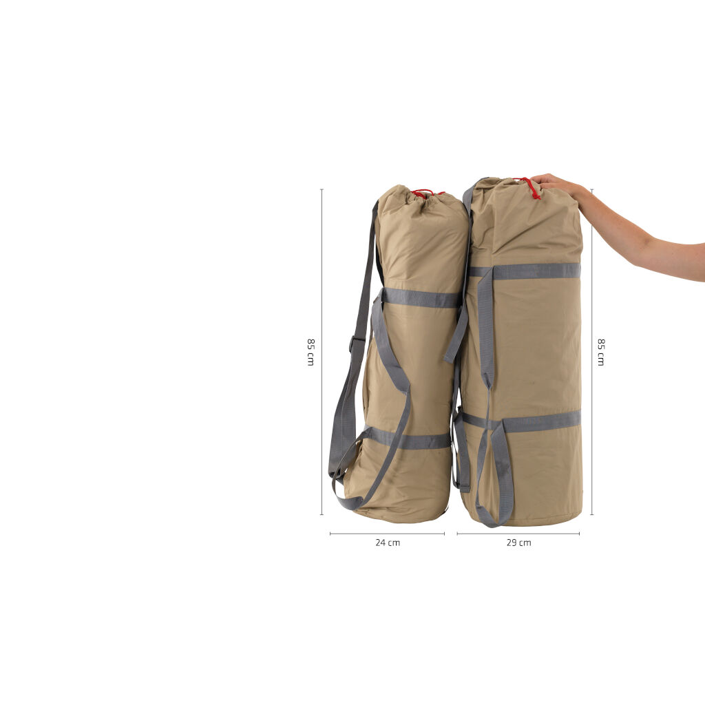 | Packstorlek | Tältduk: 85 x 29 cm, Stänger: 85 x 24 cm |