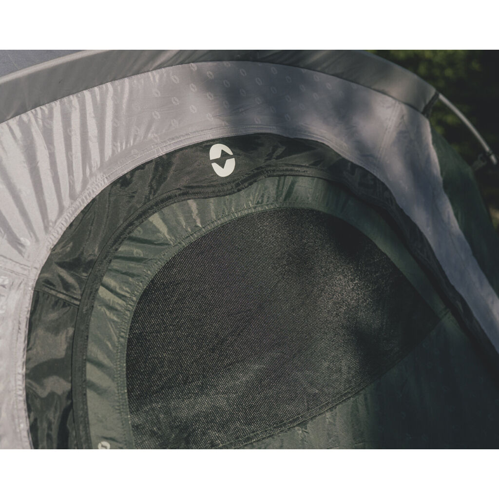 Sovkabinen är helt förseglad med tåligt golv och insektsnät i ventilationen. Ett kraftigare mörkt tyg i hela sovkabinen minimerar effekten av många tältcampares värsta fiende, morgonsolen.