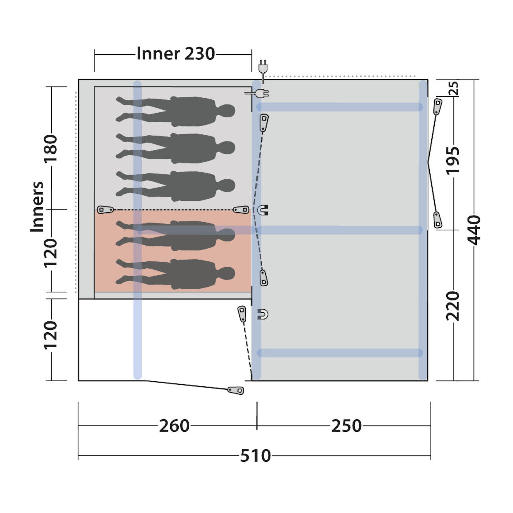 - Outwell Quick & Quiet Inner door - Ena sovrummet har utöver dragkedjan en magnetlist så den går öppna och stänga utan dragkedja