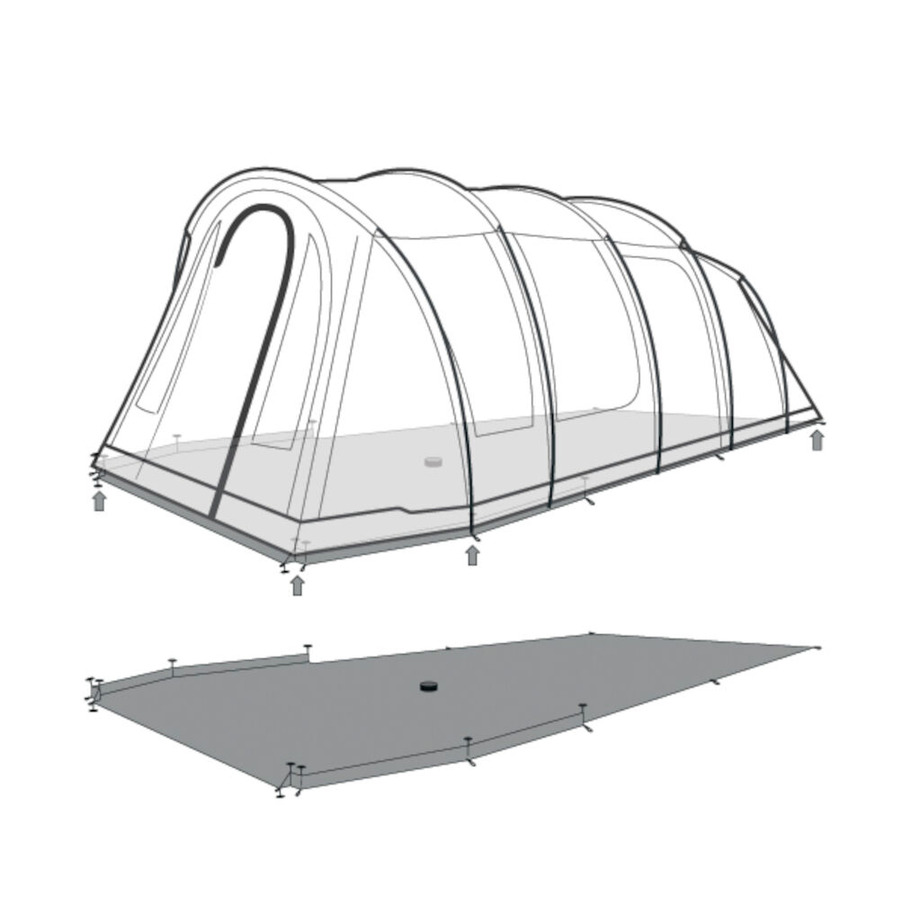 LÄS MERMåttanpassat golvskydd som läggs under familjetältet innan man reser det. Golvskyddet håller tältets golvduk ren och torr samt så minskar det slitaget på den.