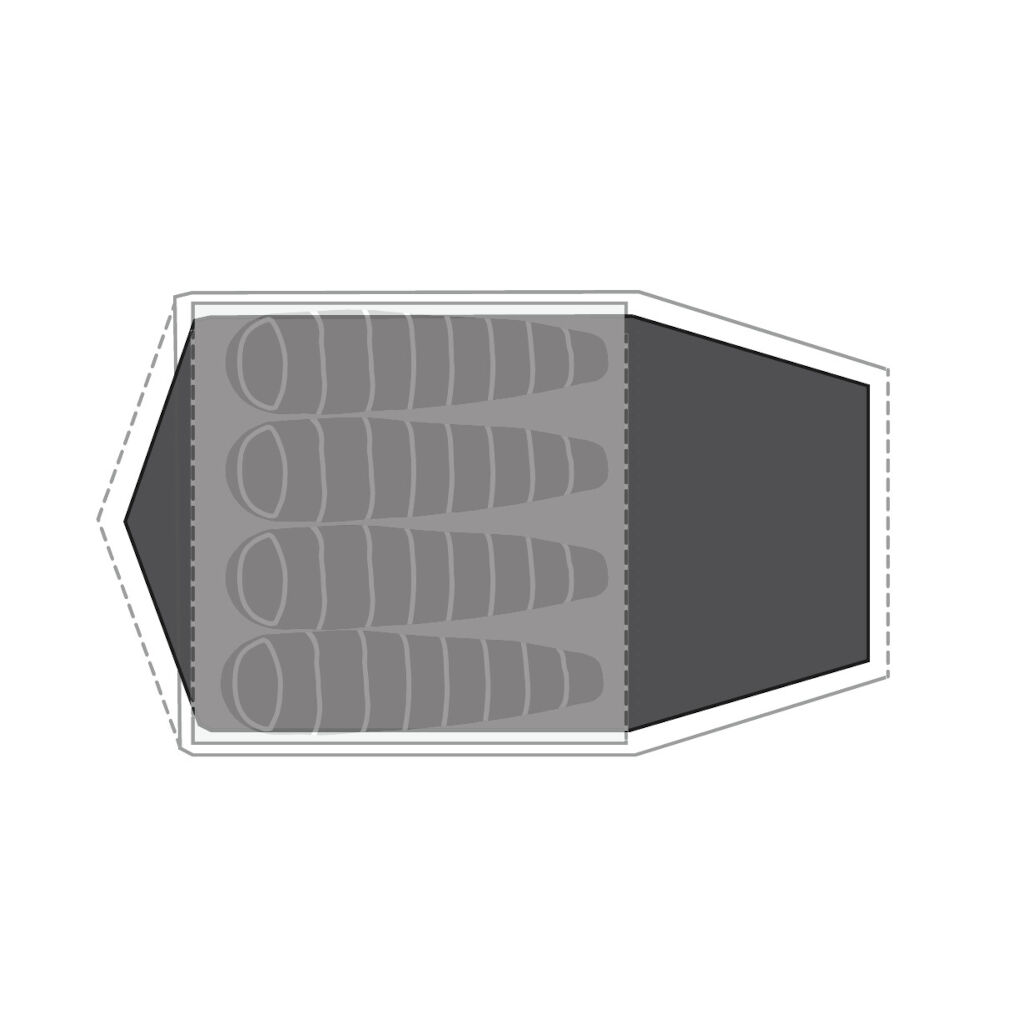 Golvduk/footprint till tältet Robens Lago Flex 4. Minskar mängden fukt som kommer in i tältet från marken och ger en torr yta för förvaring och matlagning. Skyddar även tältet mot nötning och skador.