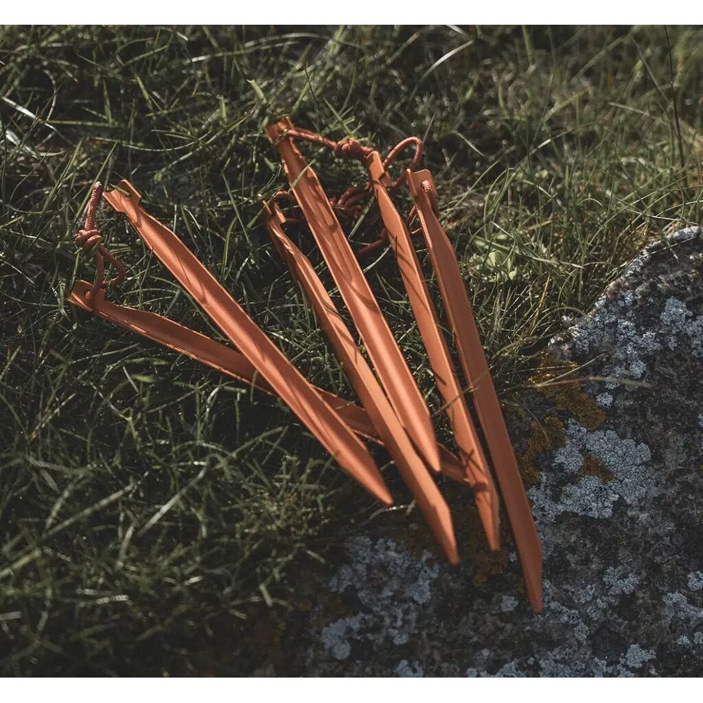 6 stycken V-formade tältpinnar i aluminium för hårt underlag.